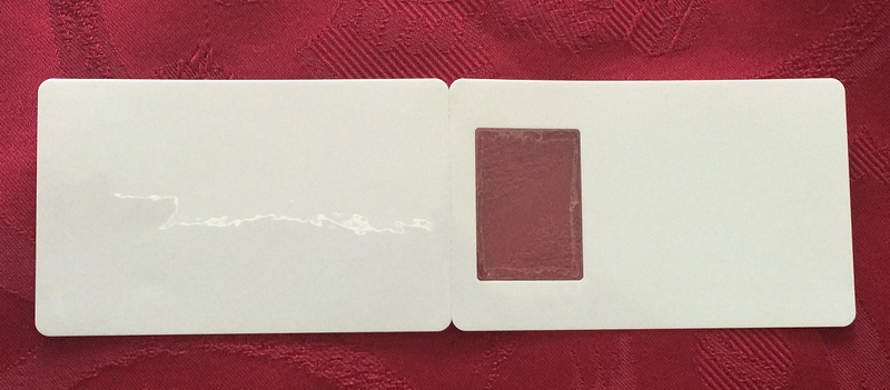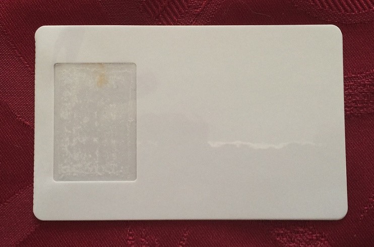 Composé d’un film compatible laser au recto et d’un patch adhésif au verso, Le destinataire détache la carte,  met la photo sur l'emplacement adhésif, plie la carte  en 2 formant ainsi la carte fini avec la carte emprisonnée.